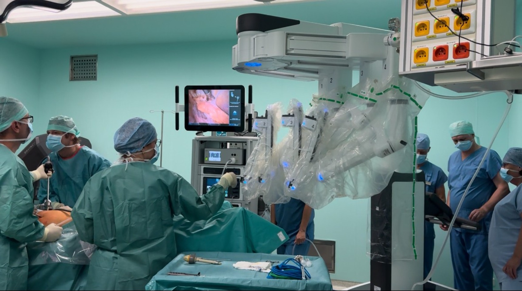 Robotický systém Da Vinci od společnosti Intuitive Surgical, který nyní máme u nás v nemocnici, představuje systém, který využívá minimálně invazivní chirurgický přístup umožňující provedení velkého množství operací. Je to systém velmi komplikovaný, ale současně sofistikovaný, a i když je pro laika velmi podobný laparoskopii, je jeho ovládání diametrálně odlišné a má jistá specifika a postupy, které je třeba dodržovat. Všichni členové našich operačních týmů (operatéři, asistenti i nelékařský perioperační personál) museli před samotným započetím robotické operativy absolvovat několikaměsíční vícefázový edukační program, který byl velmi náročný. V první fázi vyjely týmy „na stáž“ na pracoviště, kde již robotický systém používají. Pokračovali jsme několika desetihodinovými tréninky na simulátoru, dalšími instruktážemi a semináři s praktickou výukou na samotném přístroji na výukových figurínách ve spolupráci se zástupci firmy. Celý proces edukace jsme ukončili tzv. certifikací, která se skládala z praktické a teoretické zkoušky. Tyto certifikační zkoušky skládal chirurgický tým ve Stockoholmu v tréninkovém centru Karolínské univerzitní nemocnice a urologové v simultánním centru a řeckých Aténách.