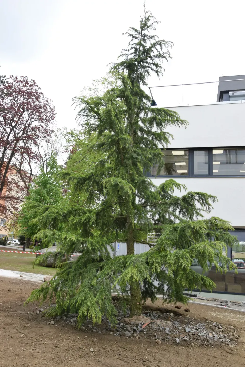U nového centrálního vstupního pavilonu nemocnice v Benešově vysadili krásné nové stromy - cedr či platan