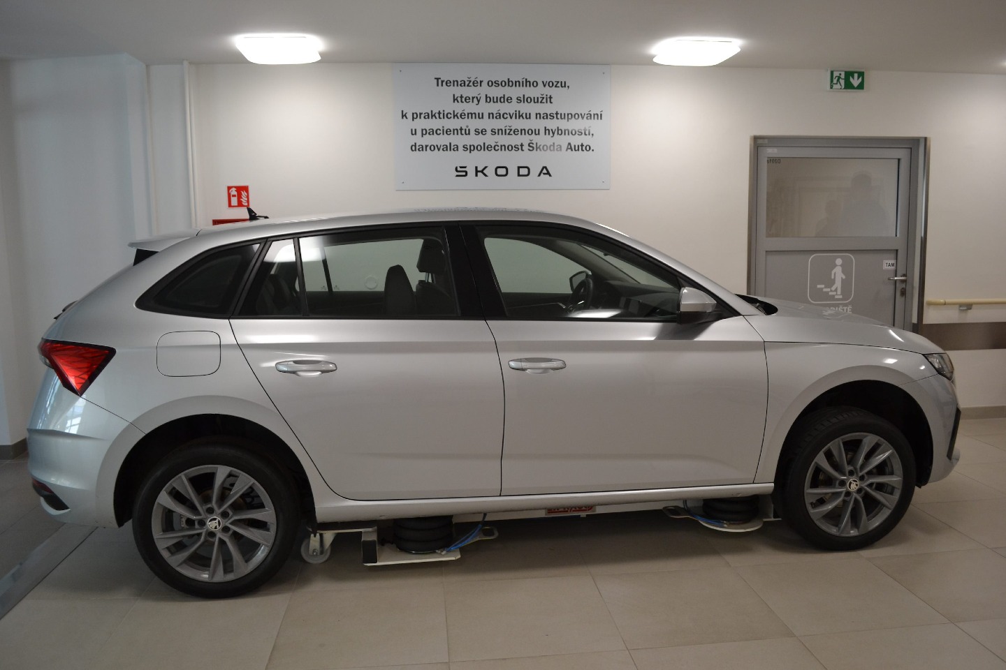 Trenažér – nepojízdné auto Škoda Scala, darované Škoda Auto a.s. – je jediným v České republice. Koncept vznikl na základě zkušeností z USA, ale naše nemocnice šla dál: namísto poloviny vozu má kompletní karoserii s plně vybaveným interiérem, ovšem bez motoru. Pod podvozkem jsou umístěné vaky, které mohou auto zvednout až do výšky SUV.