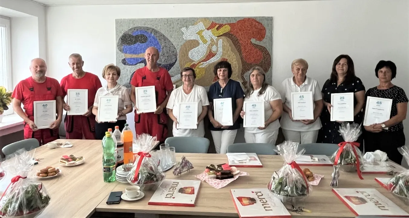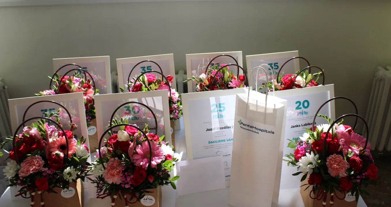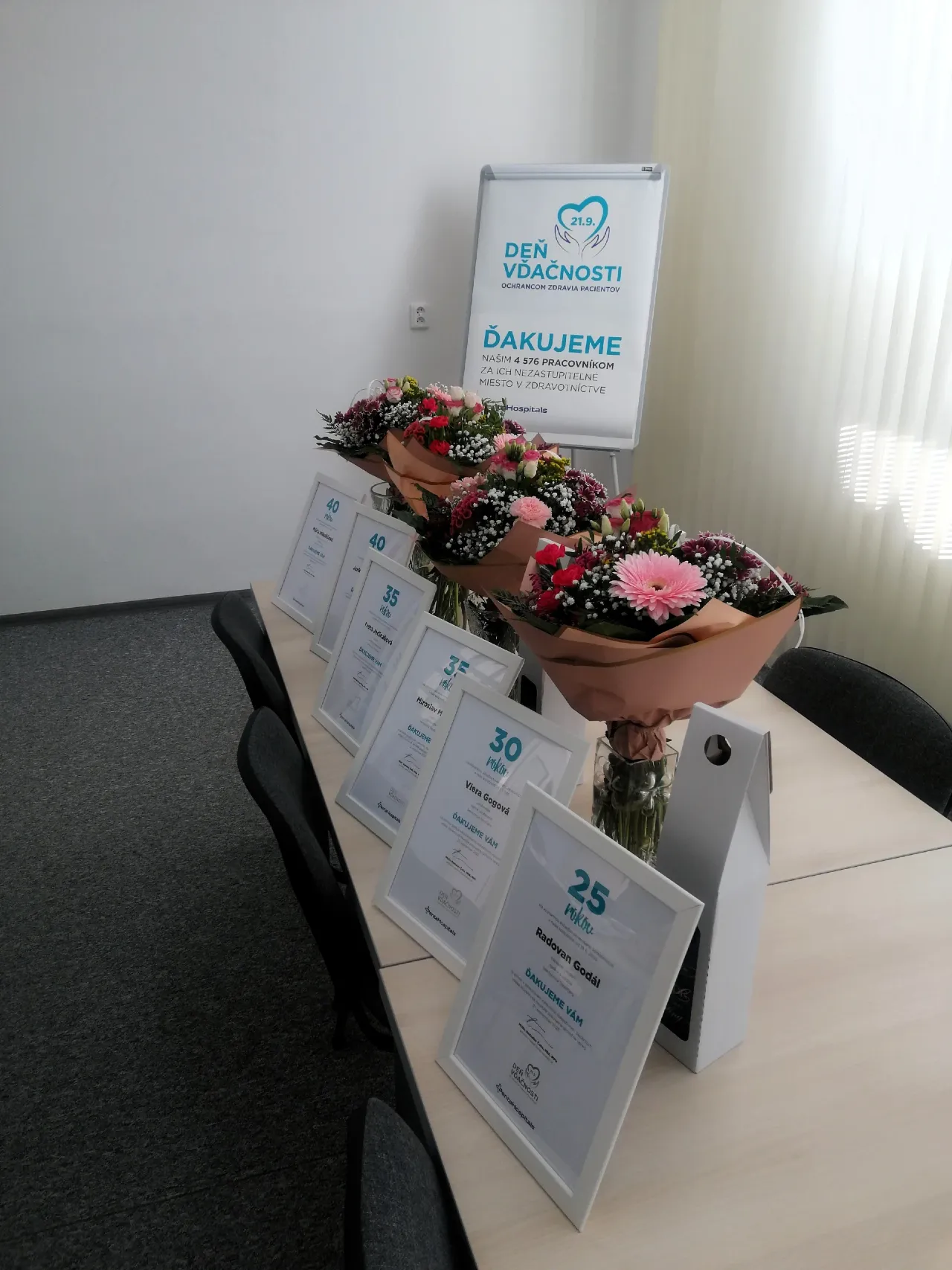 • Humenská nemocnica pripravila priateľské posedenie s jubilantkami a ocenila ich dlhoročnú prácu. Milá pozornosť čakala aj na ostatných pracovníkov, aby si pripomenuli, akí sú pre nemocnicu dôležití.