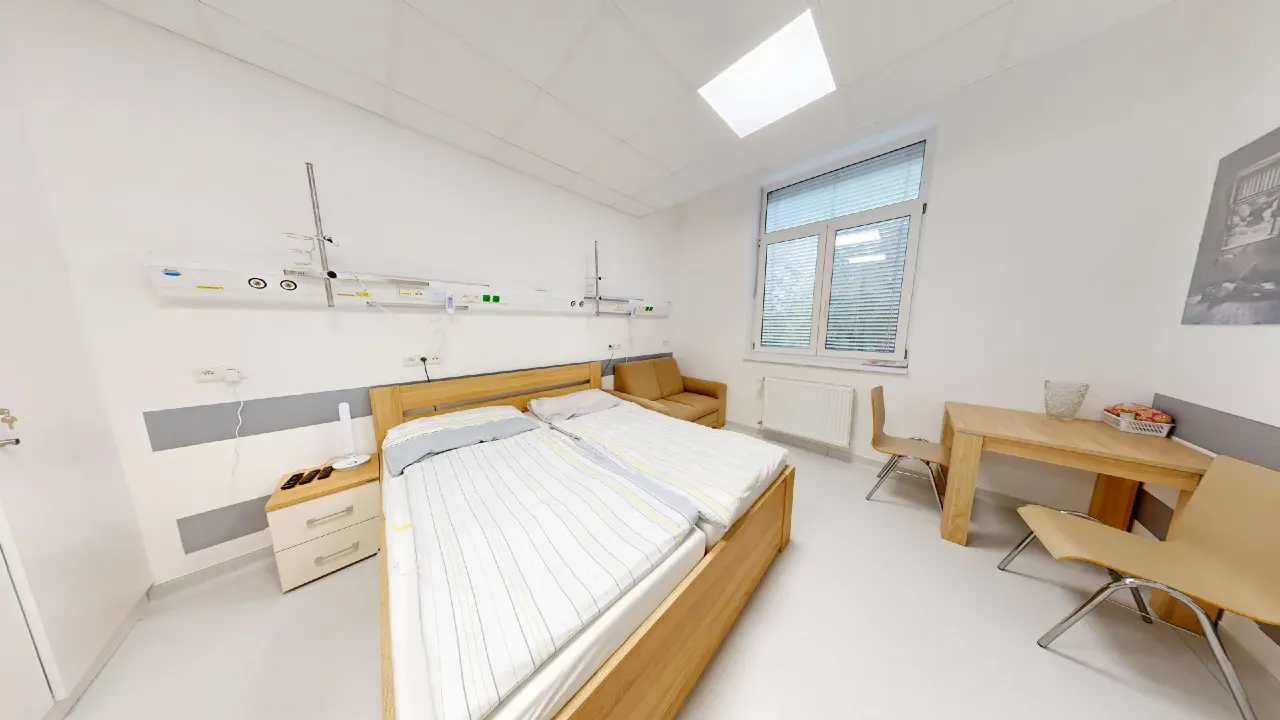 Porodní pokoje, bufetové snídaně a večeře, klasické dvoulůžkové pokoje, ale i rodinný pokoj jako nadstandardní služba, to vše i nadále nabízí porodnice, která je nyní přestěhovaná do prvního patra chirurgického pavilonu CH 2.