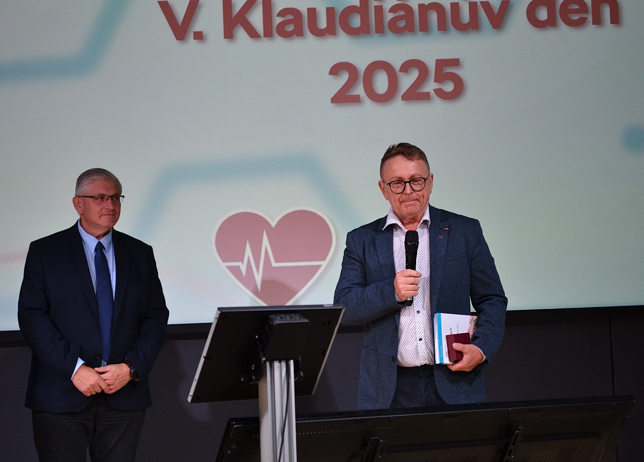 Klaudiánova nemocnice v rámci tohoto kongresu pravidelně oceňuje také své zaměstnance za celoživotní přínos pro pacienty nejen této nemocnice, ale i regionu. Letos Klaudiánovu medaili z rukou předsedy představenstva JUDr. Ladislava Řípy a hlavní sestry Bc. Aleny Bulíčkové získali bývalý primář urologie MUDr. Richard Pabišta a nemocniční ombudsmanka Jana Truksová.