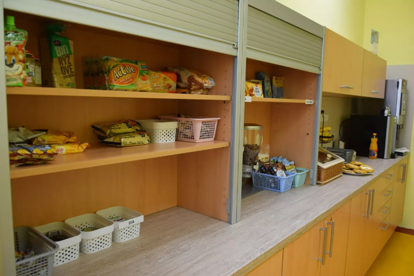K dispozici je bílé i celozrnné pečivo, müsli, sušenky, sýry, šunka, jogurty. A to vše i bezlaktózové, bezlepkové či dia. „Bufet“ chtějí sestřičky maminkám ještě vylepšovat, například pořídit smoothie mixér nebo toustovač.